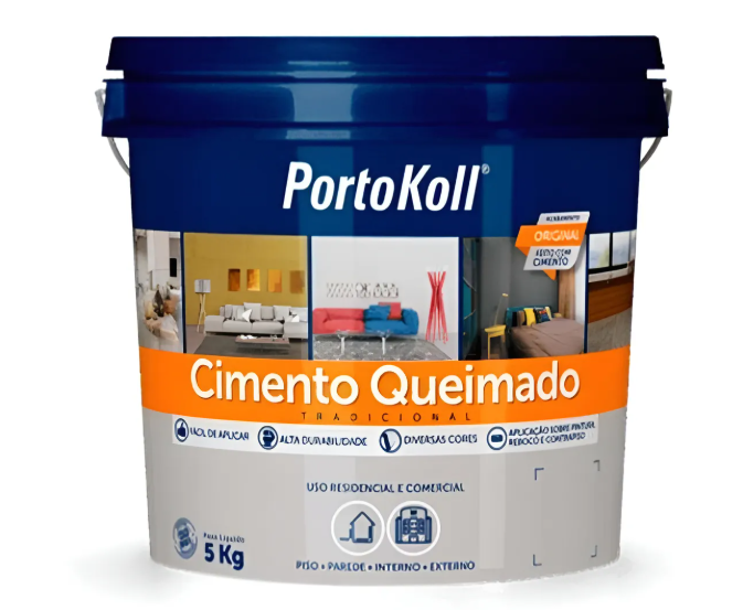 O cimento queimado portokoll é uma argamassa colorida decorativa para o revestimento de pisos e paredes de áreas internas e externas, que proporciona acabamento do tipo cimento queimado tradicional. O produto está disponível em várias cores, as quais devido à sua formulação especial, se mantém estáveis ao longo do tempo.